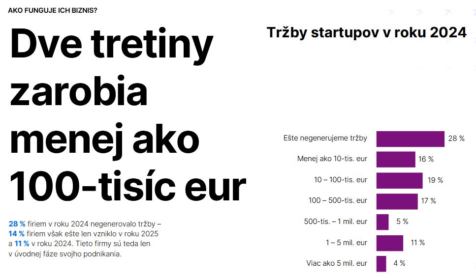 Prieskum ukazuje, že najväčšou výzvou pre slovenské startupy je predaj a získavanie zákazníkov (53 % označilo medzi top 3 výzvy). Prekážkou je aj získavanie financovania (50 %) a rast či škálovanie (28 %). Výzvou je aj nábor technických a obchodných pozícií, kde startupy zápasia s nedostatkom talentovaných ľudí a konkurenciou veľkých firiem.