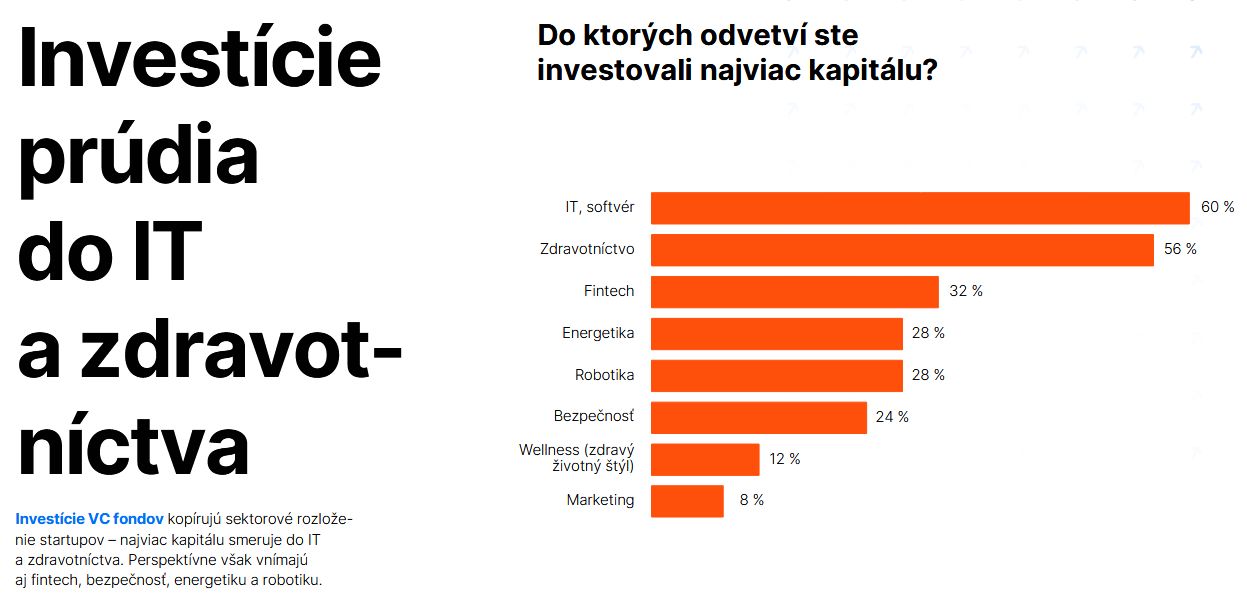 Investori vnímajú ako kľúčové riziko politickú neistotu (9 z 10 oslovených), nedostatok kvalitných startupov (62 %) a ekonomickú situáciu. Viac ako polovica investícií smeruje do firiem v pre-seed a seed fáze, pričom najväčší objem kapitálu prúdi do IT a zdravotníctva.