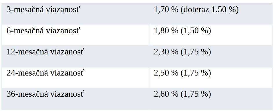 Ako sa menia úrokové sadzby termínovaných vkladov od Slovenskej sporiteľne (p.a.)