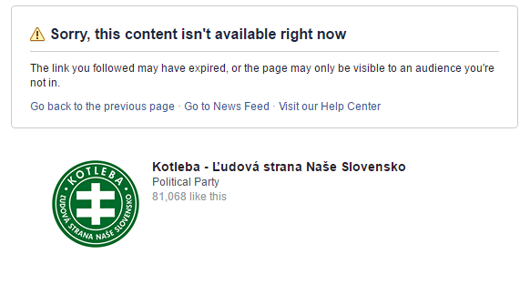 Facebook jej obsah prestal ukazovať po tom, ako sa na sarkastickej stránke Zomri rozbehla iniciatíva za nahlasovanie stránok, ktoré inklinujú či propagujú kotlebovcov. Práve stránka Zomri v noci na dnes upozornila na to, že stránka je nefunkčná.