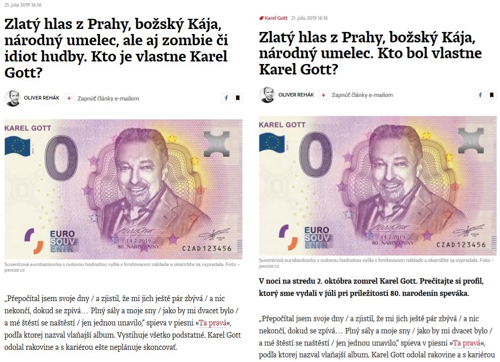 Včera vo veku 80 rokov zomrel spevák Karol Gott. Krátko po tom, ako informácia zaplavila všetky médiá a sociálne siete, Denník N zverejnil na webe článok, ktorý vznikol v lete 21. júla s titulkom Zlatý hlas z Prahy, božský Kája, národný umelec, ale aj zombie či idiot hudby. Kto je vlastne Karel Gott?