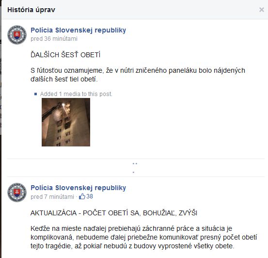 Po približne pol hodine status prepísala tak, že počet obetí nekonkretizovala.