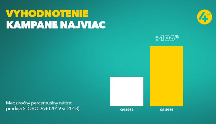 To, že nová ponuka vylepšených produktov si našla svoje miesto na trhu, ukazuje aj 106-percentný nárast predaja nových paušálov SLOBODA+. „4ka preto pridáva natrvalo k svojim novým paušálom dáta v 3G sieti obchodného partnera. Naši zákazníci tak nebudú musieť riešiť, či sa nachádzajú v našej sieti, alebo mimo nej. Slobodu dátovať majú všade. Navyše sme sa rozhodli oceniť všetkých tých, ktorí v zvýhodnenej ponuke NAJVIAC vyskúšajú výhody dátovania po celom Slovensku. Aj naďalej za paušály budú platiť nezmenené ceny, za podmienky ich automatickej obnovy,“ vysvetľuje produktová manažérka Andrea Čagalová.