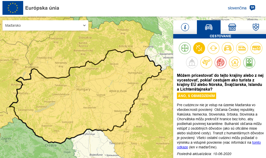 Na webe si vyberiete štát a nájdete pri interaktívnej mape aktuálne informácie o platných vnútroštátnych opatreniach ale aj praktické rady: napríklad podrobnosti týkajúce sa hraníc, dostupných dopravných prostriedkov, cestovných obmedzení, opatrení v oblasti verejného zdravia a bezpečnosti, ako sú napríklad obmedzenie fyzického kontaktu alebo nosenie rúšok.