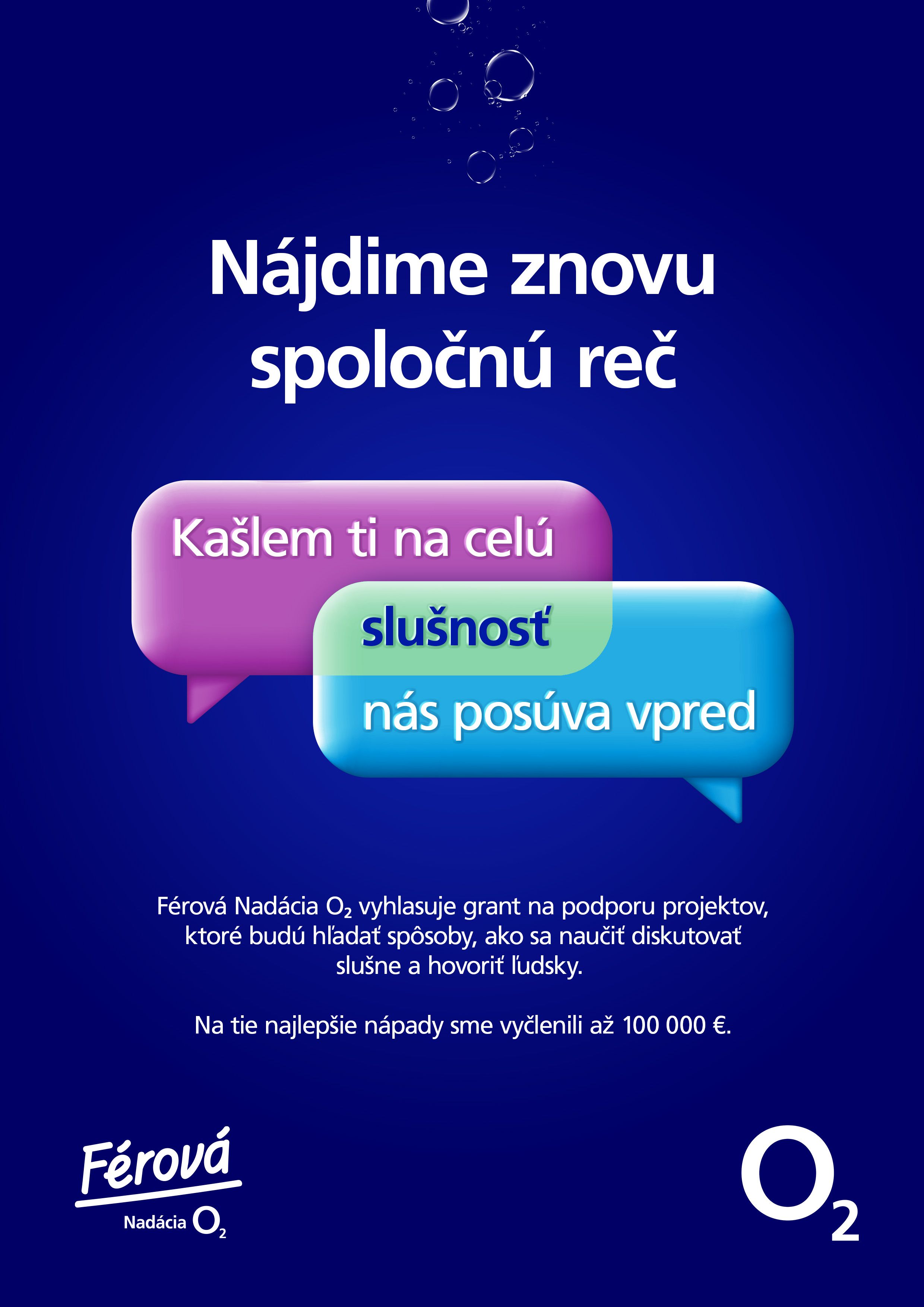 Grantová výzva „Nájdime znovu spoločnú reč“ bude pre záujemcov otvorená od 15. februára do 15. marca 2022 a Férová Nadácia O2 prostredníctvom nej podporí sumou až 100 000 EUR projekty zamerané na zmiernenie polarizácie spoločnosti.