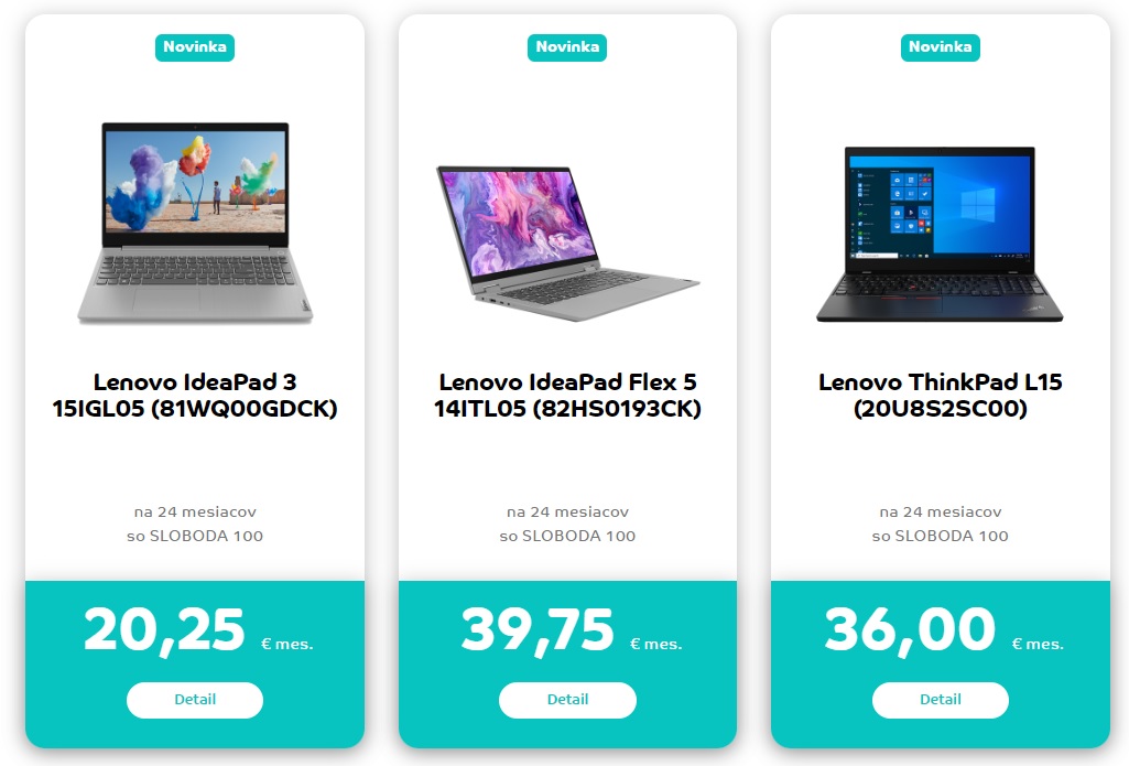 V eshope na webe 4ky pribudli okrem telefónov aj tri zaujímavé modely notebookov značky Lenovo. Najlacnejším modelom je elegantný tenký a ľahučký notebook Lenovo IdeaPad 3, vhodný pre študentov, kancelársku prácu či multimédiá. Vysoký výkon za priaznivú cenu ponúka notebook Lenovo ThinkPad L15 s matným Full HD displejom a integrovanou grafickou kartou Radeon. Na kreatívnu prácu je vhodný notebook Lenovo IdeaPad Flex 5, ktorý je možné preklopiť do režimu tabletu. Notebook je vybavený dotykovým displejom a grafickou kartou Intel Iris Xe Graphics, ktorá poskytuje dostatok výkonu aj pre použitie s grafickým softvérom.