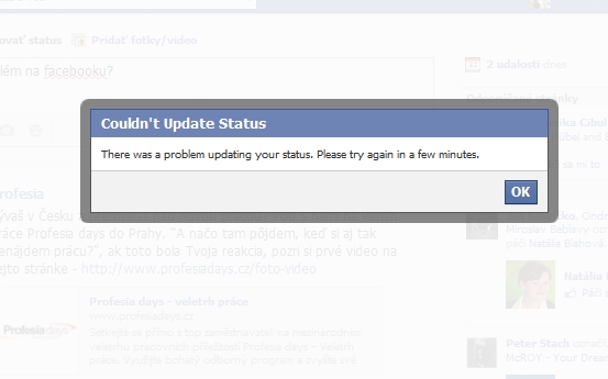 Výpadok registrovali nielen na Slovensku ale aj v ďalších krajinách, niekoľko hodín popoludní. Facebook pri pokuse napísať správu môže vyhadzovať chybné hlásenie: "Skúste neskôr prosím."