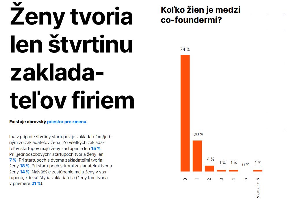 • Len v každom štvrtom startupe je (spolu)zakladateľkou žena.