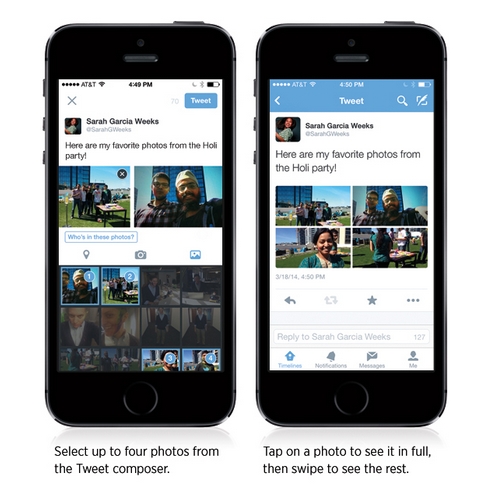 Twitter prináša dve nové mobilné funkcie: tagovanie fotiek, ktoré umožňuje označiť ľudí na fotke. Druhou novinkou je možnosť nahrať k jednému tweetu až 4 fotografie.
