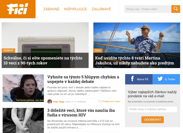 Fičí.sk v článku s podtitulom Mr. Proper výživy je nechutne zdravý zozbieral fotky pózujúcého Igora Bukovského, v dalšom zas ponúka 8 tvárí Martina Jakubca, po ktorých už nikdy nebudete ako predtým, či kompletný Atlas rekvizít bratislavskej hipsterskej kaviarne v 60 obrázkoch. Články používajú titulky s výzvami, emóciami a číslami, ako sú typické pre bulvár.