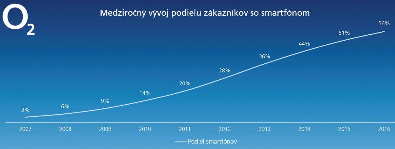 Kým koncom roka 2007, kedy O2 vstúpilo na slovenský telekomunikačný trh, mal k dispozícii smartfón približne každý tretí zákazník, už koncom roka 2011 sa ich penetrácia zvýšila na pätinu. Koncom augusta tohto roka využívalo smartfón približne 59% zákazníkov. Čo sa týka značiek telefónov, ktoré sú u zákazníkov najobľúbenejšie, prvenstvo v predaji si za 10 rokov podelili značky Aligator, Huawei, Nokia, Samsung a Lenovo.