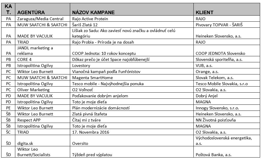 Na shortlist národnej súťaže efektivity marketingovej komunikácie sa prebojovalo 20 prác. Najviac shortlistov získali agentúry Istropolitana Ogilvy a Wiktor Leo Burnett.