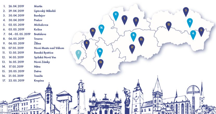 Roadshow, ktorá bude veľkou okružnou jazdou po Slovensku po 17 okresných a krajských miest, začína v piatok 26. apríla v Martine a končí 21. mája v Trenčíne a 22. mája v Krupine - tri dni pred eurovoľbami.