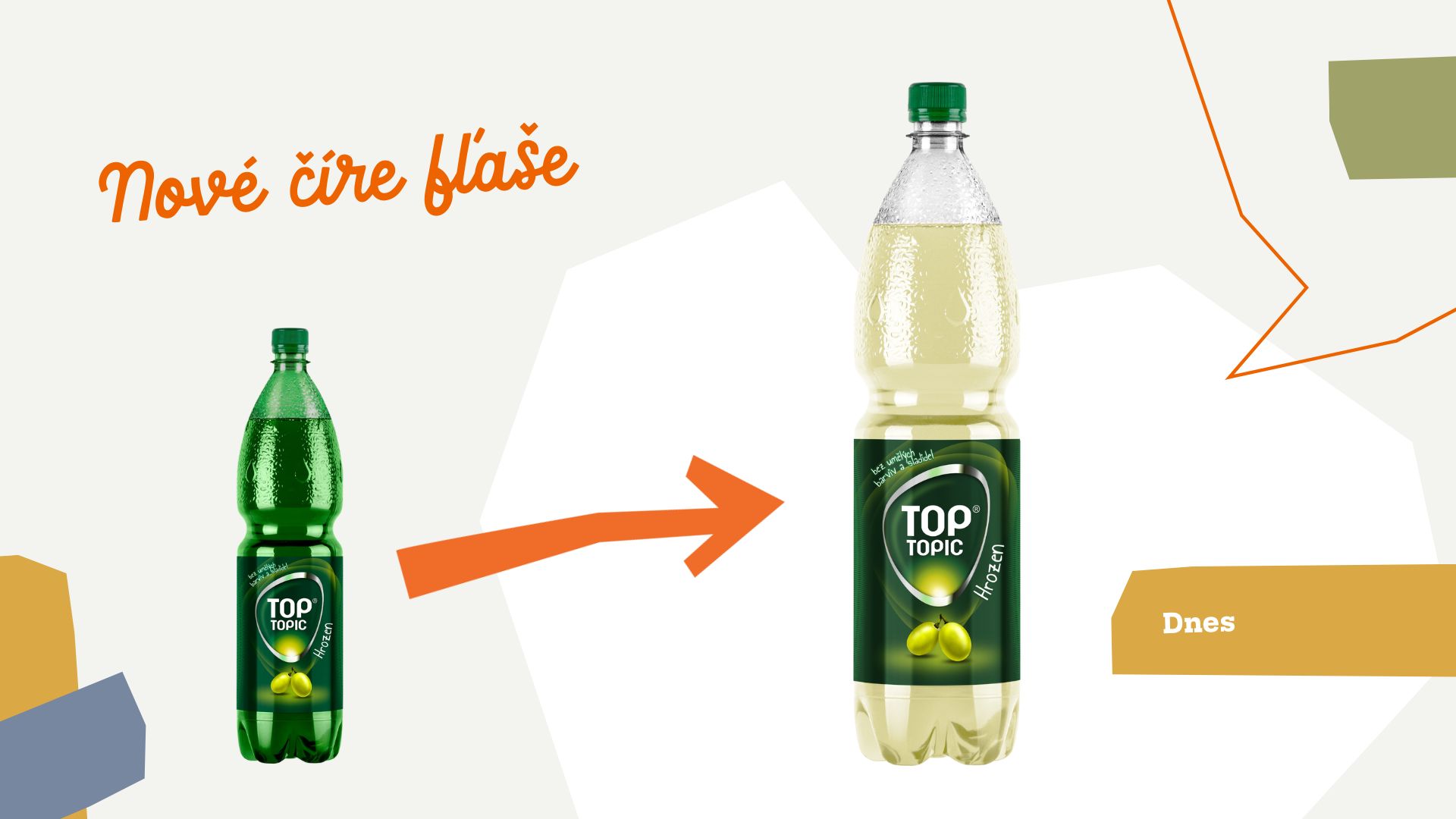• Nové číre fľaše získali značky Top Topic a detské nápoje Jupík Aqua.