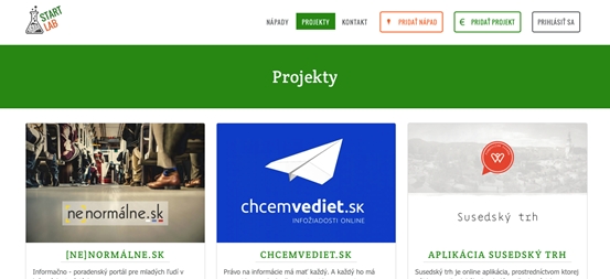 Na Slovensku vzniká mnoho zaujímavých a inovatívnych nápadov, ktoré ostávajú zabudnuté v zásuvke písacích stolov, pretože buď nemajú realizačný tím, či financie na ich spustenie. Doba sa zmenila. Na dobré nápady už nie je len čas ale aj priestor, www.startlab.sk.