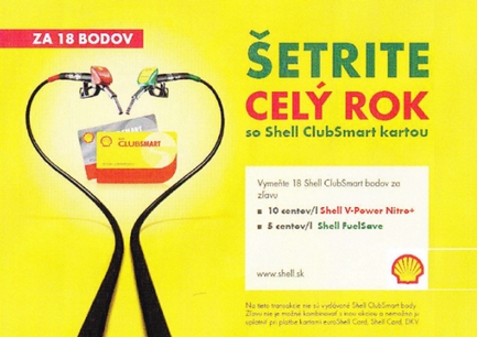 V rozpore s etickým kódexom je web stránka a reklamné pútače „Zľava 5/10 centov/l po celý rok" od SHELL Slovakia. Arbitrážna komisia sa stotočnila s názorom sťažovateľa, že text reklamy je zavádzajúci, pretože vyvoláva dojem, že za 18 bodov je možné si uplatniť zľavy na všetky natankované litre benzínu, avšak v skutočnosti, získa zákazník zľavu na liter benzínu za každých 18 bodov. Podľa komisie zadávateľ by mal komunikovať ponuku, s ohľadom na jej aktuálne prebiehajúce podmienky výlučne s upresnením, že zľavu na 1 l paliva je možné čerpať za každých 18 bodov.