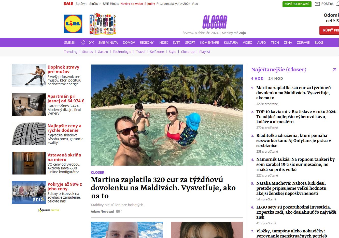 Vydavateľstvo Petit Press spustilo nový lifestylový projekt Closer so samostatnou redakciou, web je podstránkou sme.sk. Šéfredaktorom Closeru je Matúš Baňovič, ktorý predtým pôsobil v RTVS, týždenníku .týždeň a ako šéfredaktor REFRESHER.sk.