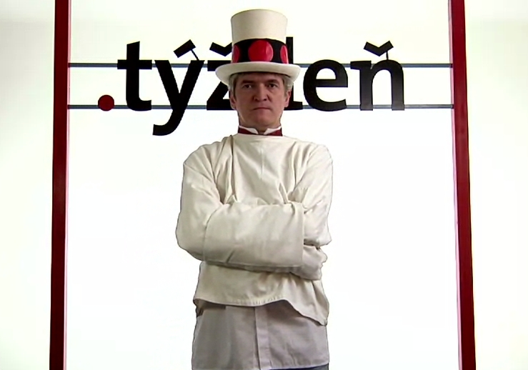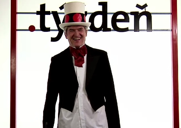 .týždeň má novú kampaň, so Štefanom Hríbom v hlavnej úlohe, s klobúkom, červenými rohami, puškou, ale aj podprsenkou, či kávou.