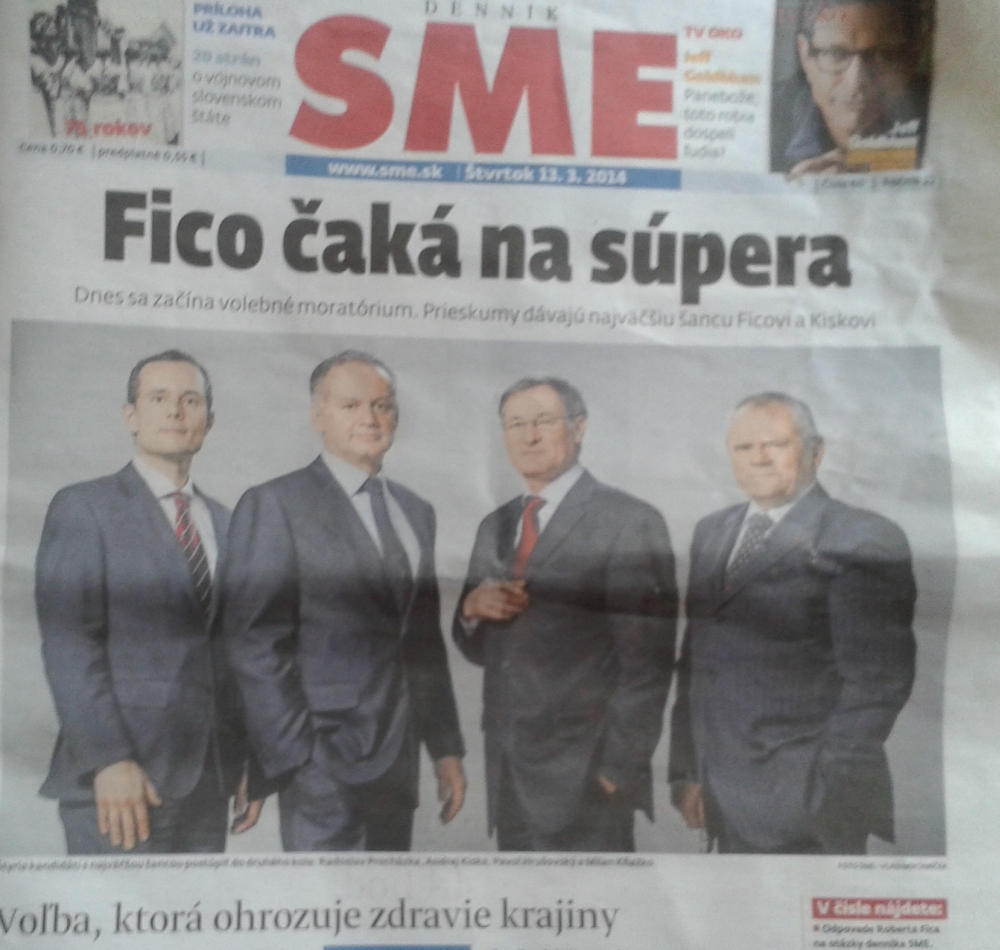 Predvolebný komentár vyšiel aj v denníku SME. Šéfredaktor Matúš Kostolný napísal, že "Robert Fico nemôže a nechce byť prezidentom všetkých občanov tejto krajiny. Celé týždne sa stavia chrbtom k čitateľom SME, medzi ktorými je aj dosť veľa jeho voličov. Takto to vyzerá, keď sa kandidát zmení na červený krížik s formulkou neodpovedal a papierovú figurínu. Strach sa k prezidentovi nehodí, ale nie je to najzásadnejší dôvod, prečo by sa Robert Fico nemal stať hlavou štátu," píše šéfredaktor. Zároveň na titulke je fotka štyroch kandidátov, kde Fico chýba. „ Príjemné je, že aj po kampani je v ponuke viac na naše pomery nezvyčajne kvalitných kandidátov. Dnešné SME preto môže byť pomôckou pri vyberan," píše Kostolný.