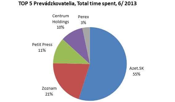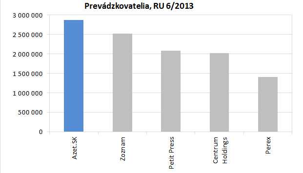 Počet unikátnych návštevníkov (používateľov – RU) jednotlivých prevádzkovateľov za 6/2013, zdroj: AIMmonitor