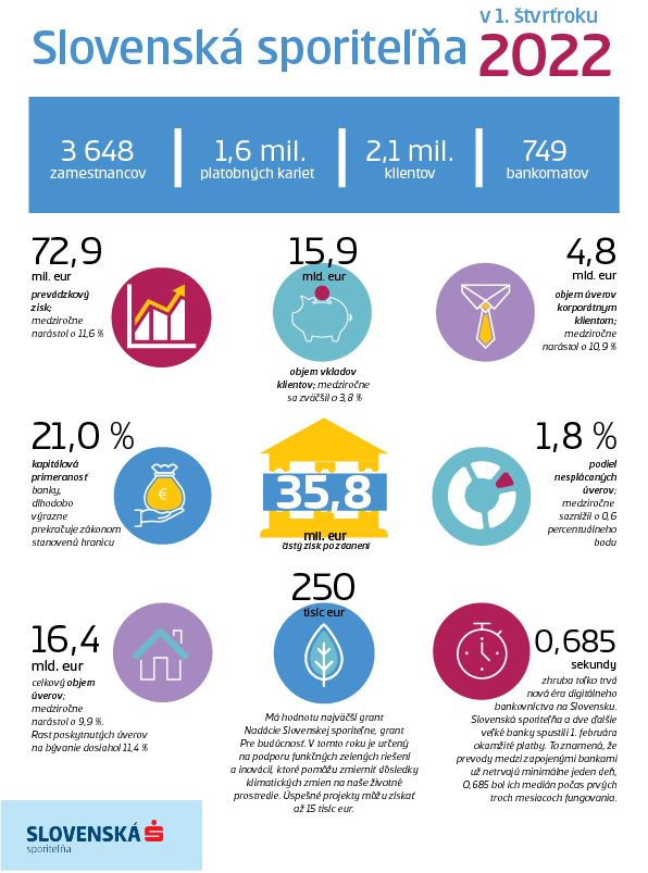 HLAVNÉ UKAZOVATELE VÝKONNOSTI SLOVENSKEJ SPORITEĽNE K 31. MARCU 2022