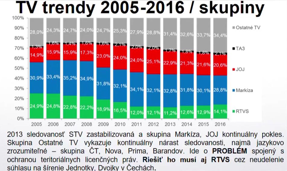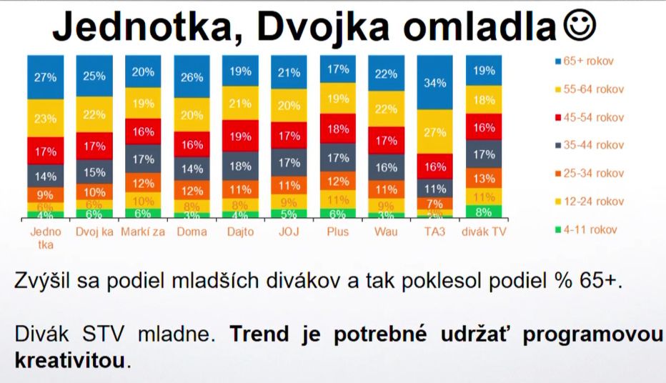 "Diváci Jednotky a Dvojky omladli, ke to príjemne konštatovanie. Treba to udržať. Rádio Slovensko však nemladne. Pri Rádiu Regina je to pochopiteľňé, ale pri ostatných staniciach nie," povedal Abrahám, podľa ktorého je to dôležité téma. Zároveň upozornil na potrebu riešenia problému presahu vysielania televíznych staníc z Českej republiky, ktoré oberajú o divákov slovenských vysielateľov.
