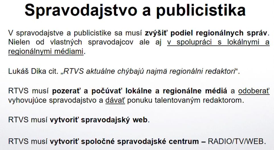 - v spravodajstve sa musí zvýšiť podiel regionálnych správ aj v spolupráci s regionálnymi vysielateľmi