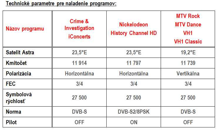Prevádzkovateľ zároveň oznámil, že sa zmenia technické parametre pre naladenie programu iConcerts, ktorý je súčasťou balíčka HD Plus, Multi HD, Komplet a Flexi 7. „K väčšine zmien príde v tomto týždni, programy MTV Rock, MTV Dance, VH1 a VH1 Classic budú pripojené v budúcom týždni," píše spoločnosť v tlačovej správe.
