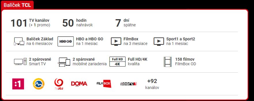 SledovanieTV ponúka pre všetkých majiteľov novo zakúpených televízorov TCL Android TV prístup k prémiovému obsahu, ktorý zahŕňa 85 televíznych kanálov, 66 rádií, HBO, HBO2, HBO3 vrátane filmotéky HBO GO, 13 kanálov zo skupiny FilmBox, Sport1 a Sport2. Celkom teda 103 TV kanálov a 2 filmotéky. Darček môžu získať zákazníci k novo zakúpeným televízorom TCL Android TV, Thomson Android TV a soundbarom TCL. Akcia platí od 8.6. do 31. 12. 2021. K ponuke sa vzťahujú nižšie uvedené podmienky*.