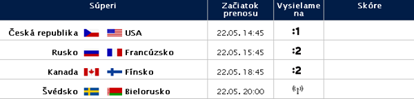 Štvrťfinále MS v hokeji 2014 štartuje už dnes prvým duelom Česká republika - USA.